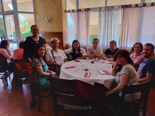 Después de recordar el viaje por tierras mexicanas y ver numerosas fotos de plantas en hábitat, nos reuníamos parte de los asistentes al congreso en el restaurante donde tendría lugar la comida ya tradicional. En esta comida nos juntamos gran parte de aficionados con viveristas y gente de la organización y disfrutamos de un buen momento juntos, también es un buen lugar para conocer gente nueva de esta afición que por algún motivo todavía no nos conocemos o no hemos coincidido.