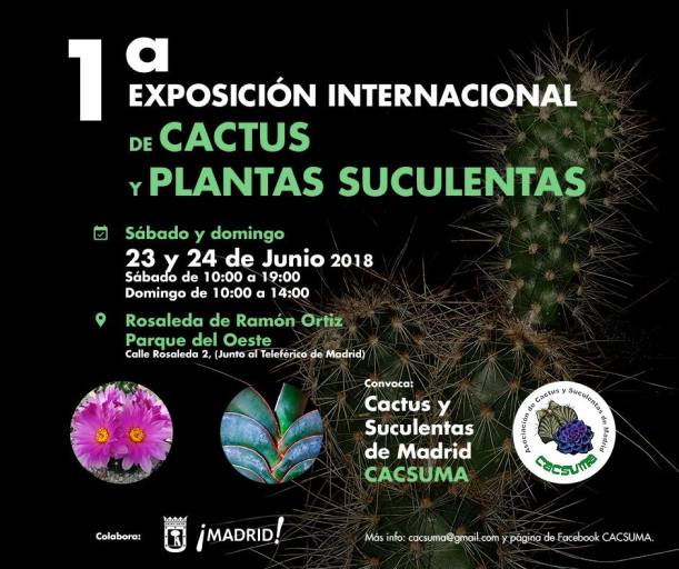 Una buena noticia para todos los aficionados a los cactus y plantas suculentas, ya tenemos otra cita mas en nuestro calendario cactófilo, esta vez el evento esta organizado por la asociación madrileña CACSUMA y promete ser uno de los mas destacados a nivel nacional.